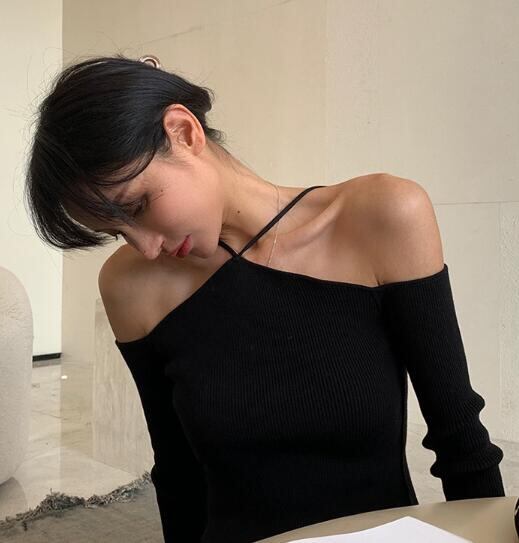 2024年INS レディース気質 鎖骨毛系 トップス レディーススリム ベース ニットセーター 2色