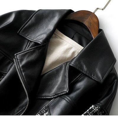 小香風 切り替え PU 皮 ジャケット 秋冬新作 レディースファッション アウター ゆったり 百掛け カジュアルコート 体型カバー