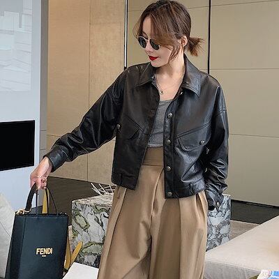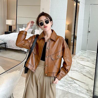 レギュラー/裏起毛 ライダースジャケット レディース ショート丈 アウター 秋冬 レザー革ジャン トップス