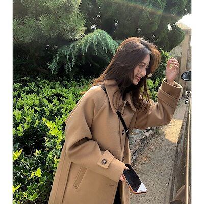 ラシャコート レディース 秋冬新品 韓国ファッション ロング丈 アウター ゆったり 厚手 ヘップバーン風 トレンチコート