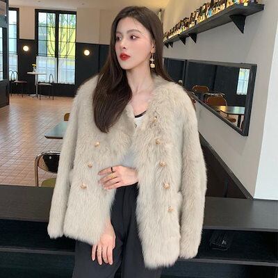 レディース 秋冬 新しい 高級 ゆったり イミテーション 毛皮 アウター モコモコ 小香風 トップス