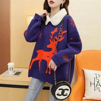 人气新作サンタコスプレ レッド30%までに制限 クリスマス ジャンパー レディース ゆったり のんびり 厚手 日系 レトロ 優しい トップス 秋冬新 韓国