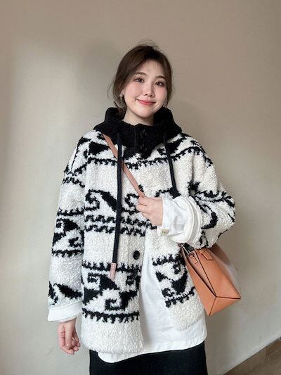 ヴィンテージプリントラムウールコート レディース 秋冬 暖かい トップス ゆったり 薄手