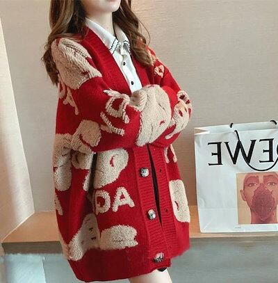 可愛い 長袖 ニット アウター 秋冬 長袖 きれいめ トップス レディース セーター ビッグシルエット カーディガン トレンド 秋 大人可愛い 羽織 カジュアル 冬