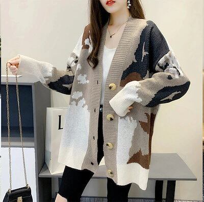 ニット レディース(メール便) セーター 秋冬 カーディガン 羽織 森ガール 可愛い カモフラ カーデ カジュアル ゆったりトップス