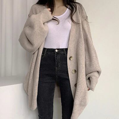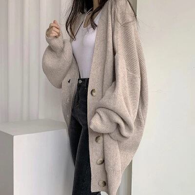 オーバーサイズ カーデ 長袖 トレンド ボリューム トップス 羽織り レディース 秋 カジュアル 冬 大人可愛い ニットカーディガン ニット アウター ロング