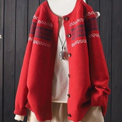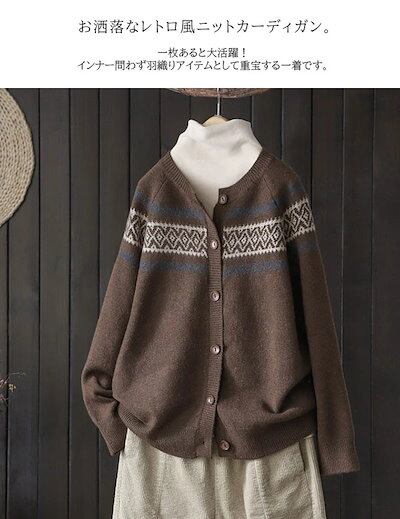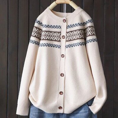 ニット 冬 トレンド カーディガン Uネック 長袖 柄 レディース 秋 カジュアル レトロ 大人可愛い ノルディック