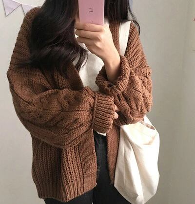 ニット 可愛い トップス ガーリー レディース 秋冬 ざっくり編み カーディガン ゆったり 長袖 暖か