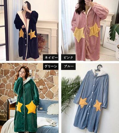 モコモコ 前開き M ワンピース XL 長袖 ルームウェア ふわもこ 厚手 星柄ポケット ルームウエア 着る毛布 レディース XXL 冬 L ロングワンピ パジャマ プレゼント20代30代40代