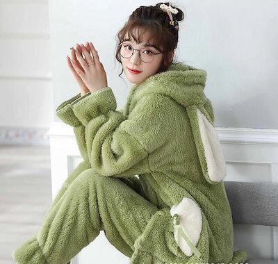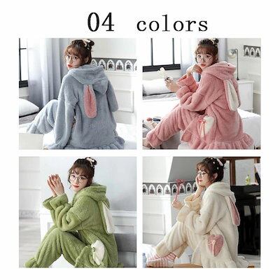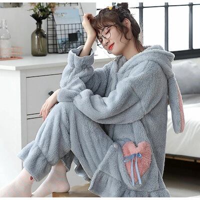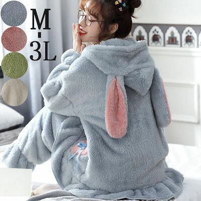 大きいサイズ 20代30代40代プレゼント L 2L 可愛い レディース 3L ルームウェア 羽織り ナイトロープ 長袖 寝巻き 冬 暖かい 韓国風 うさ耳 M 厚手 セットアップ フランネル 部屋着