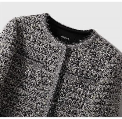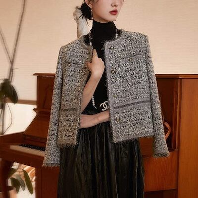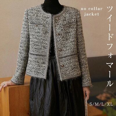 ツイード ジャケット レディース ノーカラージャケット 春 秋 冬 ノーカラー 長袖 アウター 無地 トップス 羽織り ママスーツ おしゃれ シンプル きれいめ ツイード 体型カバー カジュアル お出