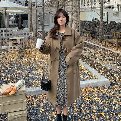 新作 韓国春 ロングチェスターコート 韓国ファッションても い大きいサイズS-2XLコート レディースラシャジャケットコートロングコートレディース 冬