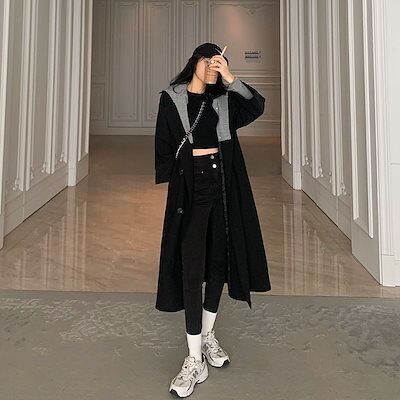 新作 フェイクレイヤードコート 韓国春 ロングチェスターコート 韓国ファッションても い大きいサイズS-2XLコート レディースラシャジャケットコートロングコートレディース 冬