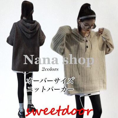 ニットパーカー レディース ニットセーター フード付き オーバーサイズ ニット セーター ドロップショルダー 重ね着風 ニットトップス プルオーバー