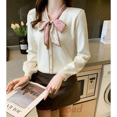 ニットセーター レディース 秋冬 40代 長袖 ニットトップス トップス リボンネック レディース 洗えるニット 韓国風 大人 通勤OL ゆったり ブラック