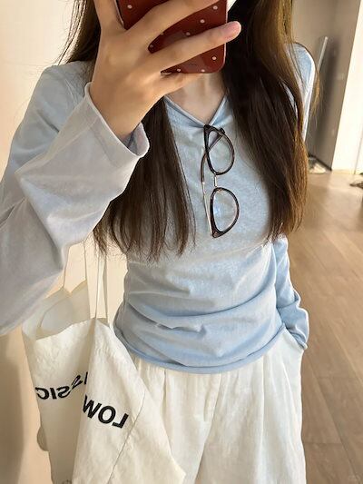 長袖 Tシャツ レディース 2024 日焼け止めスモック 初秋 韓国製 多用途 薄い部分 ボトム トップス ベーシックニット