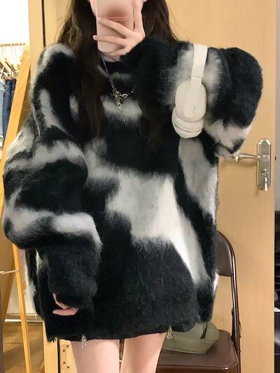 ランダムパターン サイズ ラインニット秋冬 人気ニット セーター レディース トップス クルーネック ストリート カジュアル シルエット スタイルアップ 色っぽ 女っぽ
