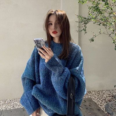 グラデーション色 3色 秋冬 人気ニット セーター レディース 長袖 ラウンドネック 厚手 ニット セーター レディース トップス