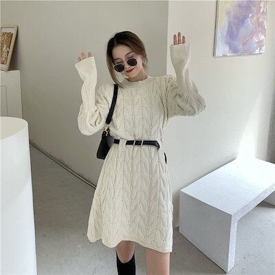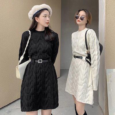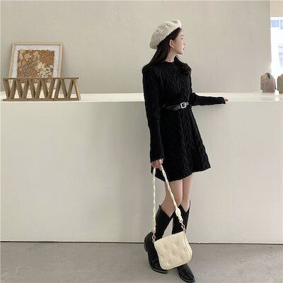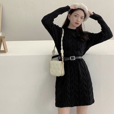 人気なリブニット ベーシックニット カシミヤタッチワンピース韓国ファッションニットセーター ワンピーススリミング百掛けロングセーターレディース ニットワンピース