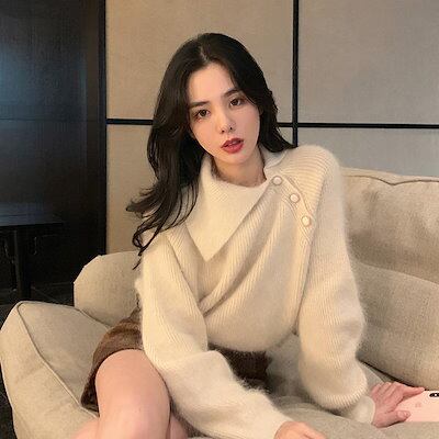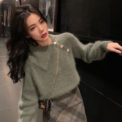 洋風 ゆったり 怠惰な風 レディース 秋冬 セーター 韓版 開襟 着痩せ やさしい セレブ ボトミングシャツ