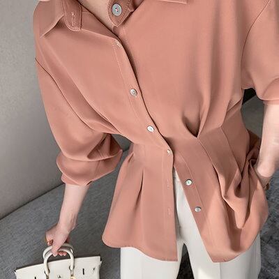 2024新作 おしゃれ シンプル シャツ トップス ウエスト引き締め 気質 着痩せ ブラウス 韓国ファッションシアーシャツ ブラウス ゆったり 快適性 紫外線対策 ロンt シフォンブラウス