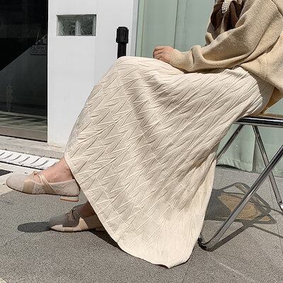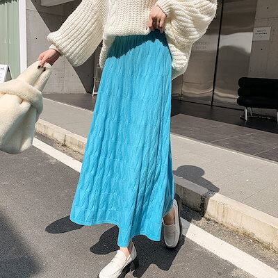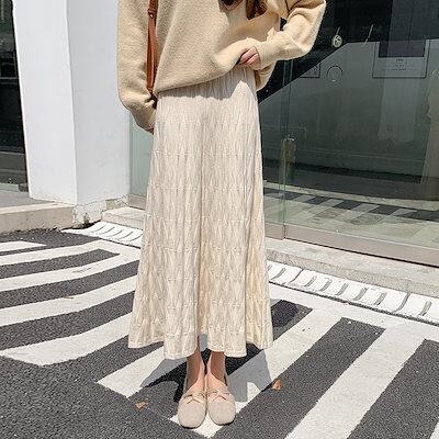 【2枚購入で 2oo円OFF!】秋冬ハイウエストカットスカート女子丈の毛糸A字大振り プリーツスカート ロングスカート 可愛い スカート ハイウエスト タイトスカート 流行り 百掛け スカート