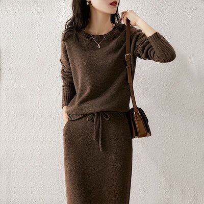 【2枚購入で 2oo円OFF! 】秋冬 新作 セットアップ 通勤 長袖セーター 上下レディースセットアップ ニット アウター 二点セット ベーシックニットおしゃれ セーター ワイドパンツ 福袋