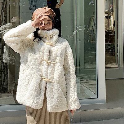 【2枚購入で 2oo円OFF!】新作 高級感 厚手 ホーンバックル アウター 皮毛一体アウター ジャケット トップス 開き襟 防寒カジュアAWアウター 韓国ファッション 福袋