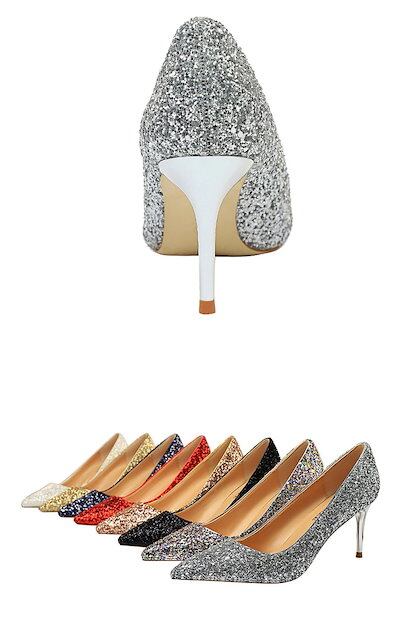 8色34-43ヤード春夏秋冬新金?版ファッションセクシーな夜店スパンコール百合やわらかい快適通勤甘い気質OL着浅口尖った9.5cmハイヒールレディースシングルシューズHZBI