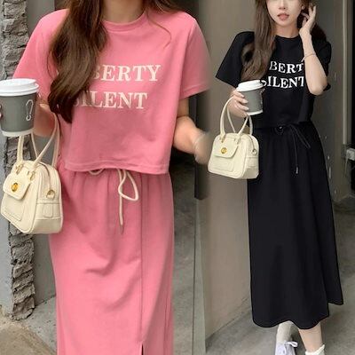 半袖 上下2点セット おしゃれ レディース Tシャツ/スカート 【2枚購入で 部屋着 2oo円OFF! スウェットカジュアル 】韓国ファッション夏セットアップ 上下セット ジャージ ルームウェ 可愛い