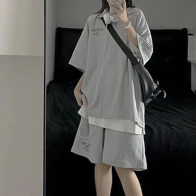 半袖セットアップ 【2枚購入で スウェット上下セット ショットパンツ 韓国ファッション 半袖スウェット 二点セット レディース 】夏 ゆったり 2oo円OFF! ジャージ カジュアル 運動