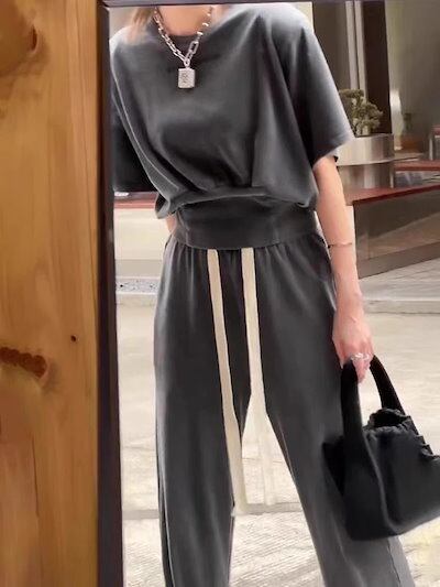 着痩せ 運動 ワイドパンツ ホームウェア カジュアル ブラック 韓国ファッション 気質 ルームウェア 夏服 二点セット夏 ワイドパンツロングズボン レディース 2024夏 セットアップ グレー
