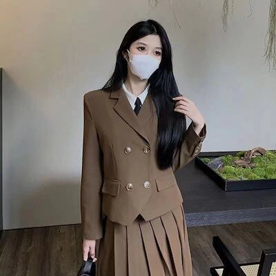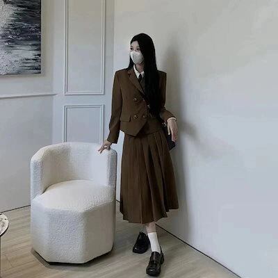 涼しく楽ちんセットアップ キャンパス風 無地 スーツトップス おしゃれ 百掛け レディース 】スーツ二点セットレトロ プリーツスカート 【2枚購入で 卒業式 スーツ 2oo円OFF!