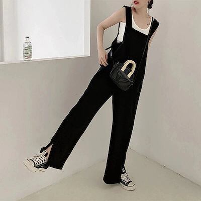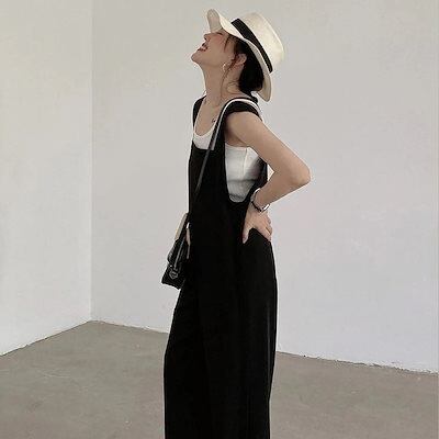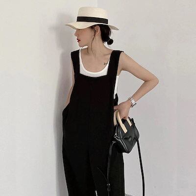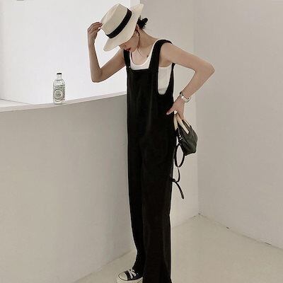 ズボン サロペット オーバーオール ワイドパンツ タンクトップ ゆったり リネン素材トップス 二点セット 快適 2oo円OFF! 綿 【2枚購入で セットアップ 韓国 着やせ 】夏