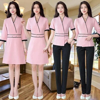 エステ 2oo円OFF! 【2枚購入で 制服おしゃれ 七分袖 エステ制服半袖 レディース サロン通勤 女性 ジャケット2点セットシャツ+ズボン涼しく楽ちんセットアップ 】スーツセットアップユニフォーム