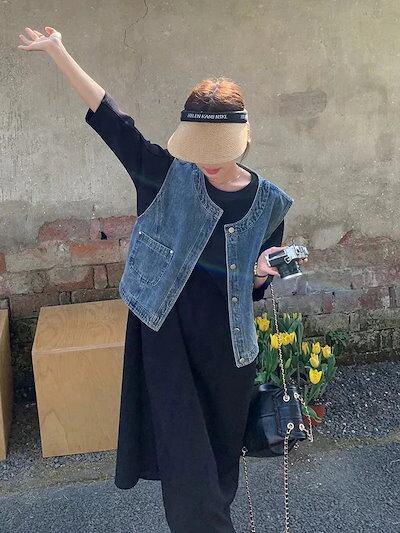 レディース ベスト tシャツ 長袖 デニムベスト+ワンピース 2oo円OFF! 大きいサイズ 】2点 セミロングワンピース 【2枚購入で コート