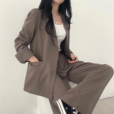 スーツ 2oo円OFF! 【2枚購入で スーツ 春 アウター 卒園式 ジャケット/ワイドパンツ 通勤 セットアップ カジュアルゆったり レディース フォーマル 二点セット ビジネススーツ ママ 】春