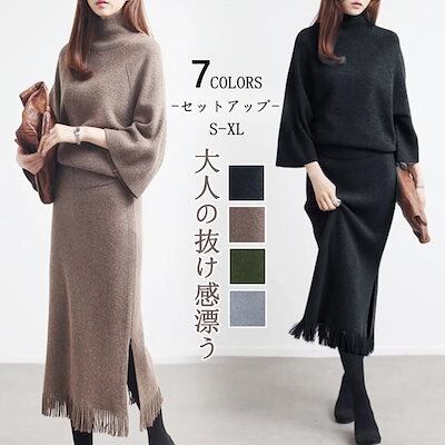 上下レディースセットアップ ニット アウター 二点セット ベーシックニット 秋冬 新作 おしゃれ 気質 セーター ワイドパンツ セットアップ 通勤 長袖セーター 福袋