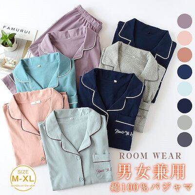 パジャマ ルームウェア 綿100% メンズ レディース 男女兼用 上下セット 2点セット 長袖 前開き ロングパンツ コットン 夫婦 ペアパジャマ カップル 暖かい 春秋冬 部屋着 ホームウェア 寝間