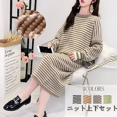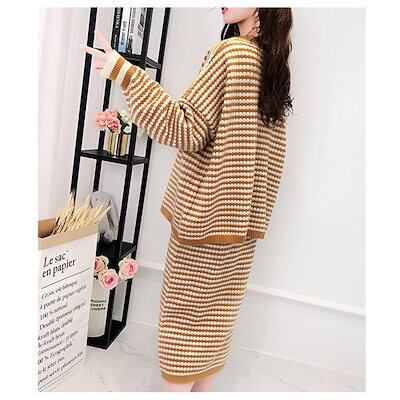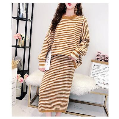 セットアップ ニット セーター トップス スカート レディース ブラウス 無地 秋 2点セット 上下セット 通学 40代 黒