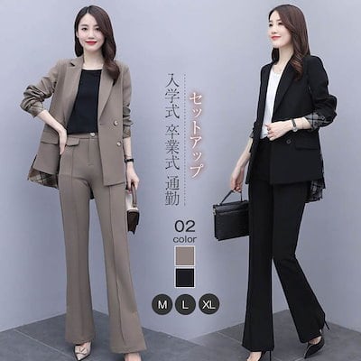 パンツスーツ セットアップ レディース 上下セット スーツジャケット 2点セット チェック柄 オフィス ビジネス 通勤 OL お呼ばれ 入園式 入学式