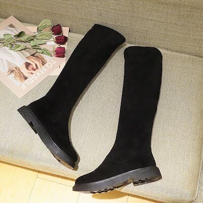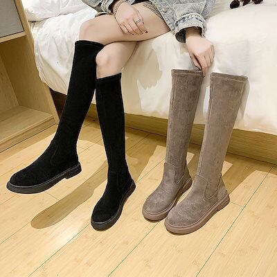 【3日以内出荷】厚底シューズ ブーツ 2023 新作 スエード ストレッチ フラット ロング マーティンブーツ トール レディース 韓国