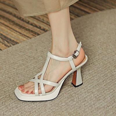 大人気サンダル厚底サンダル夏の新作レトロな真甘皮防水台太ヒール一疲れない文字ヌードカラー雰囲気ハイヒール