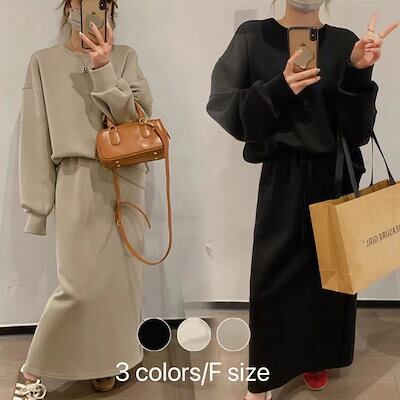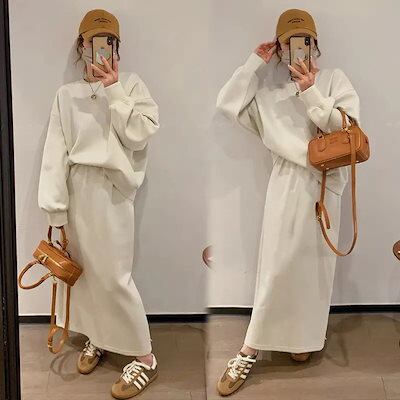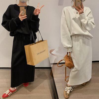 セットアップ 裏起毛 スウェット+スカート プルオーバー レディース 秋 冬韓国ファッション
