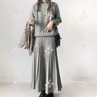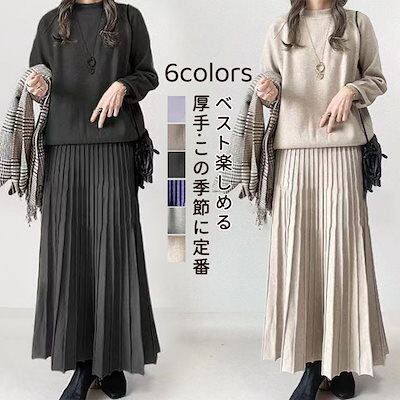 【2枚購入で 2oo円OFF!】2024新作秋冬2TYPEセットニット/長袖セーター+スカート/ワイドパンツ/無地/上下セット体型カバー/二点セット/上下セット/セットアップ ワンピース
