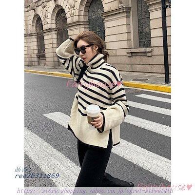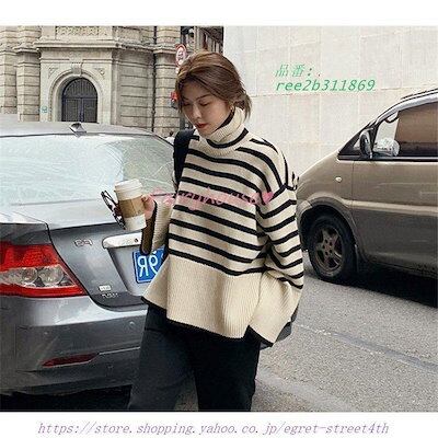 ニットトップス レディース 秋 冬 40代 長袖セーター 大人ニットインナー ゆったりプルオーバー 丈セーター オシャレ韓国風 ハイネック ボーダー柄