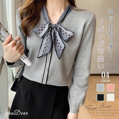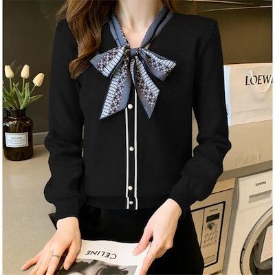 ニットセーター レディース 秋冬 40代 長袖 ニットトップス トップス リボンネック レディース 洗えるニット 韓国風 大人 通勤OL ゆったり ブラック
