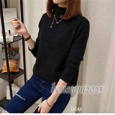 ニットトップス レディース 秋冬30代長袖トップス 無地ニットトップス ハイハイネックニットインナー プルオーバー ゆったりセーター 韓国風 大人可愛い オシ