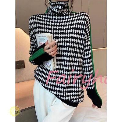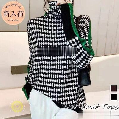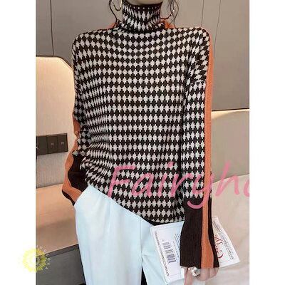 ニットトップス レディース 秋冬 40代 長袖セーター 配色 ハイネック 丈セーター ゆったりプルオーバー オシャレ韓国風 大人ニットインナー 50代 30代