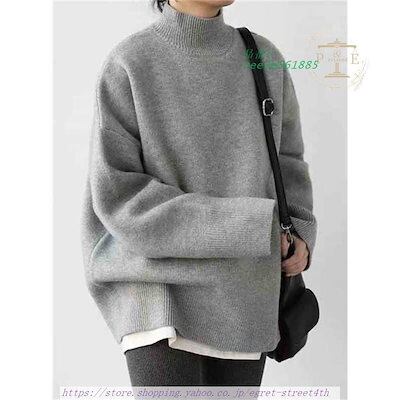 ニットトップス レディース 秋冬 40代 長袖セーター 配色 オシャレ韓国風 大人ニットインナー ゆったりプルオーバー 丈セーター 30代 50代